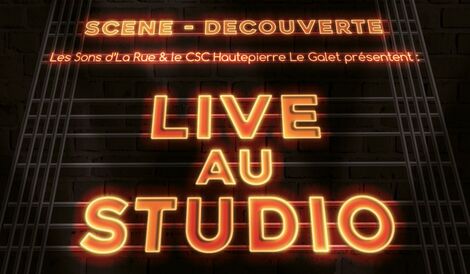 Le Live au Studio est une scène découverte bimestrielle ouverte à tous les artistes issus des cultures urbaines (hip- hop, newsoul et r’n’b). Ce projet est géré par l’association Les Sons d’La Rue et le CSC Hautepierre Le Galet.