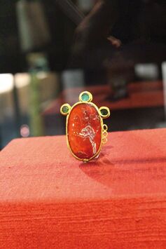 Last but not least, la visite se termine avec le joyau de la collection : une intaille en agate rouge qui représente l’empereur Commode sur son cheval. « C’est un bijou unique au monde, un travail d’orfèvrerie remarquable, de 5 cm de haut : on n’en connaît pas d’autres aussi grande ! Elle est d’une telle rareté et d’une telle valeur qu’elle est à l’origine de la création du musée », informe Bénedicte Viroulet.