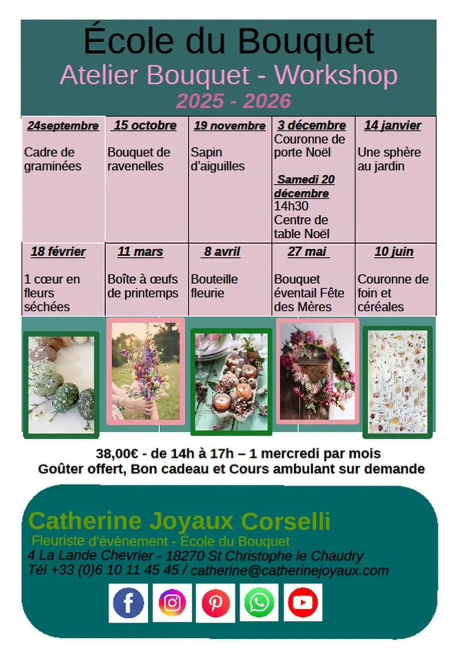 Ateliers floraux chez MélodieJusqu'au 08/08/2026 BourgesEnvie de ralentir, de créer, de vous entourer de beauté ? Mélodie vous invite à découvrir sa programmation d’ateliers floraux pour 2025 et 2026.