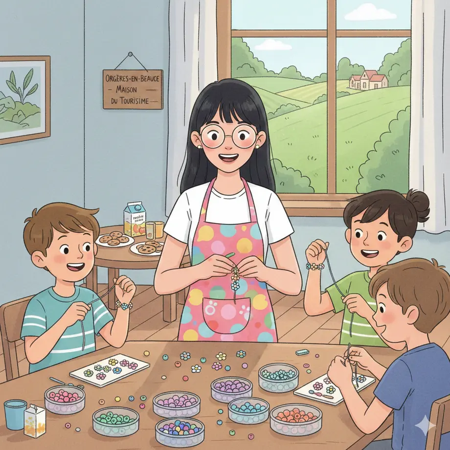 Dans le cadre des ateliers « Les p’tits vacanciers », les enfants réalisent un bracelet de perles en jouant avec les couleurs, les formes et les associations pour créer un bijou à leur goût. Un moment créatif et accessible, idéal pour prendre le temps de faire soi-même et repartir avec une création à porter ou à offrir.