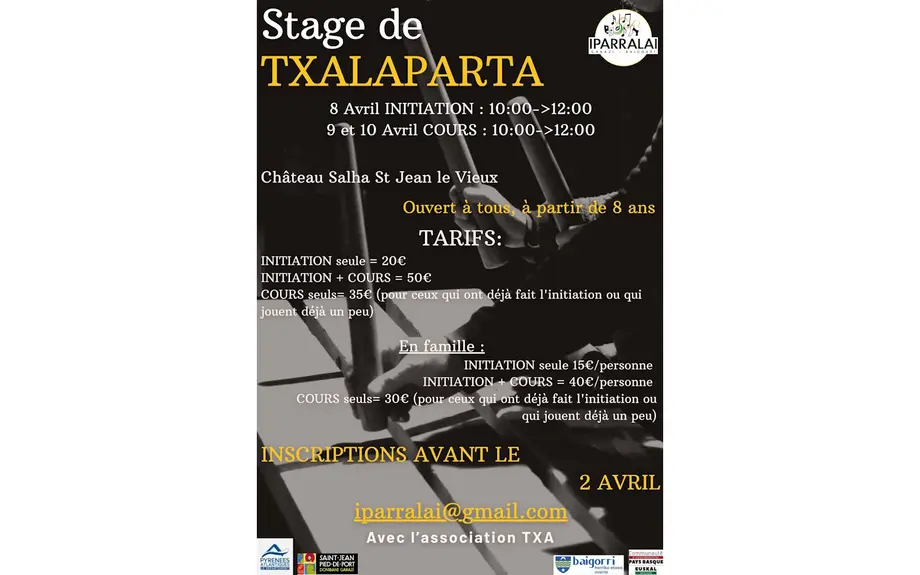 Stage de txalaparta : initiationLe 08/04/2026Saint-Jean-le-VieuxOuvert à tous à partir de 8 ans.