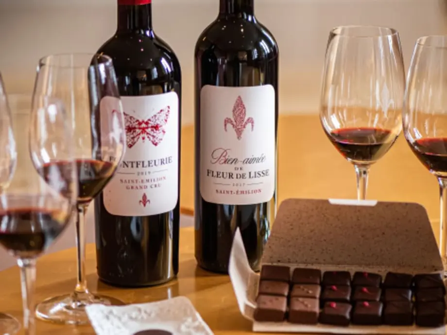- Accord vin et chocolat avec dégustation de 3 vins de la production et une sélection de chocolats d’une chocolatière de Saint-Émilion.