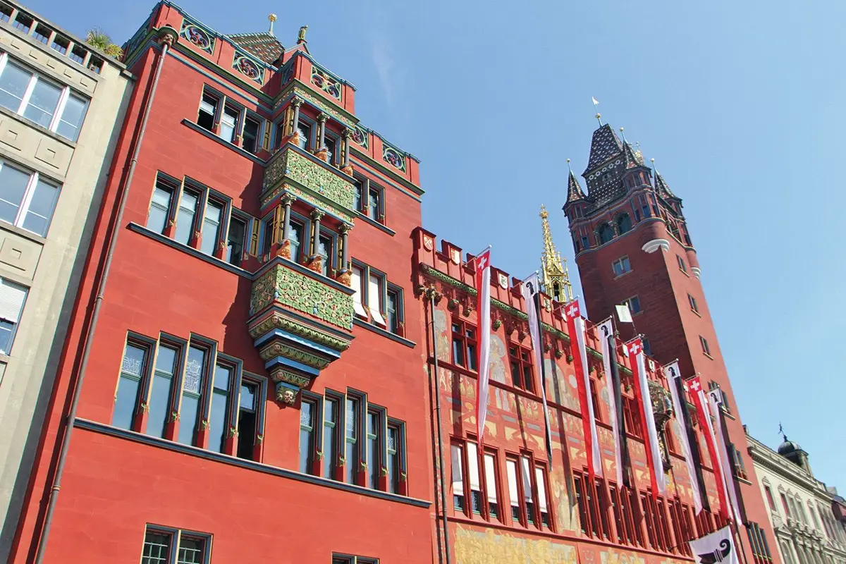La Roothuus, c’est l’Hôtel de Ville de Bâle qui domine la Marktplatz, située sur la rive gauche de la ville. Ce bâtiment remarquable du XVIe siècle se voit de loin avec sa façade rouge en grès, ses murs peints et sa haute tour. La statue sur l’escalier extérieur représente le fondateur de la ville, Lucius Munatius Plancus, un des lieutenants de Jules César. à deux pas de là, la Münsterplatz, où se trouve la cathédrale de Bâle, qui vaut aussi le coup d’oeil.