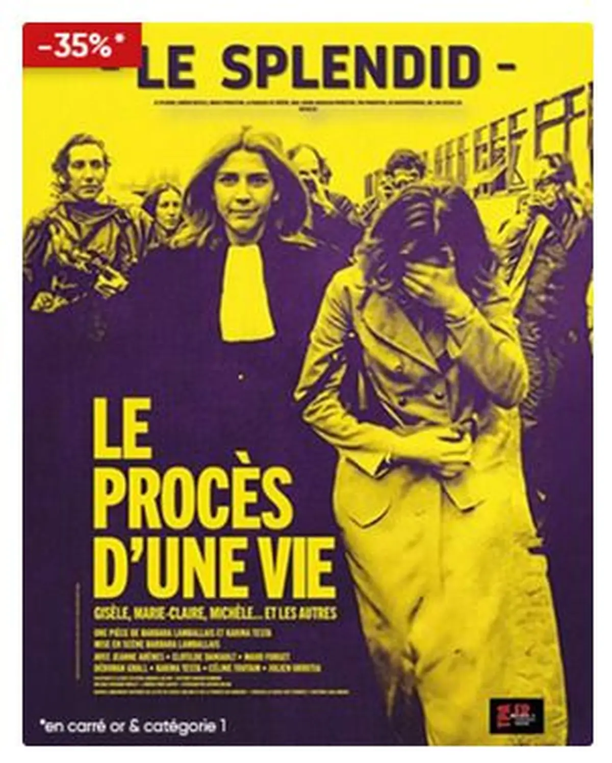 Ne manquez pas la promotion limitée : bénéficiez de -35% en carré or et catégorie 1 jusqu'au 29 avril pour assister au spectacle Le Procès d'une vie au Théâtre du Splendid à Paris.