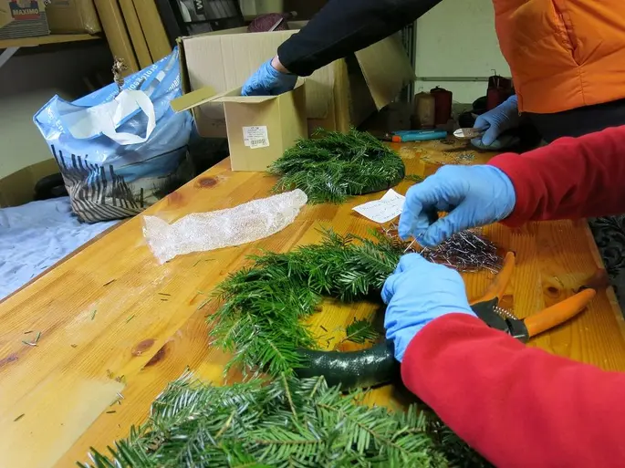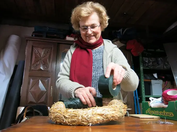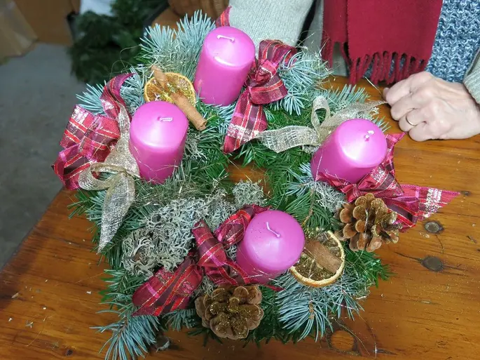 Le principe ? A chacun des quatres dimanches avant Noël, une bougie est allumée, pour patienter jusqu'au 24 décembre. Cette fleuriste de métier démarre ses confections le 9 novembre épaulée par ses deux « apprentis ». A quelques jours du début de cette période de fête, Yvette Courtois nous livre sa recette d’une couronne réussie. « Mais il ne faut pas avoir peur de se salir les doigts », prévient-elle.