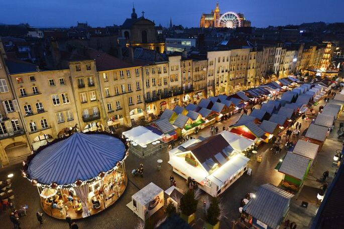 Plusieurs places de Metz sont envahies par les chalets des marchés de Noël ! © Gisselbrecht Ville de Metz Plusieurs places de Metz sont envahies par les chalets des marchés de Noël !