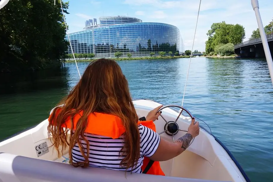 Pour notre petit tour de Strasbourg en bateau électrique, nous avons choisi la société alsacienne Captain Bretzel, qui se situe du côté du Quai des Belges, en face du Parc de la Citadelle. Après une prise en main rapide, nous voilà déjà non loin du Parlement Européen !