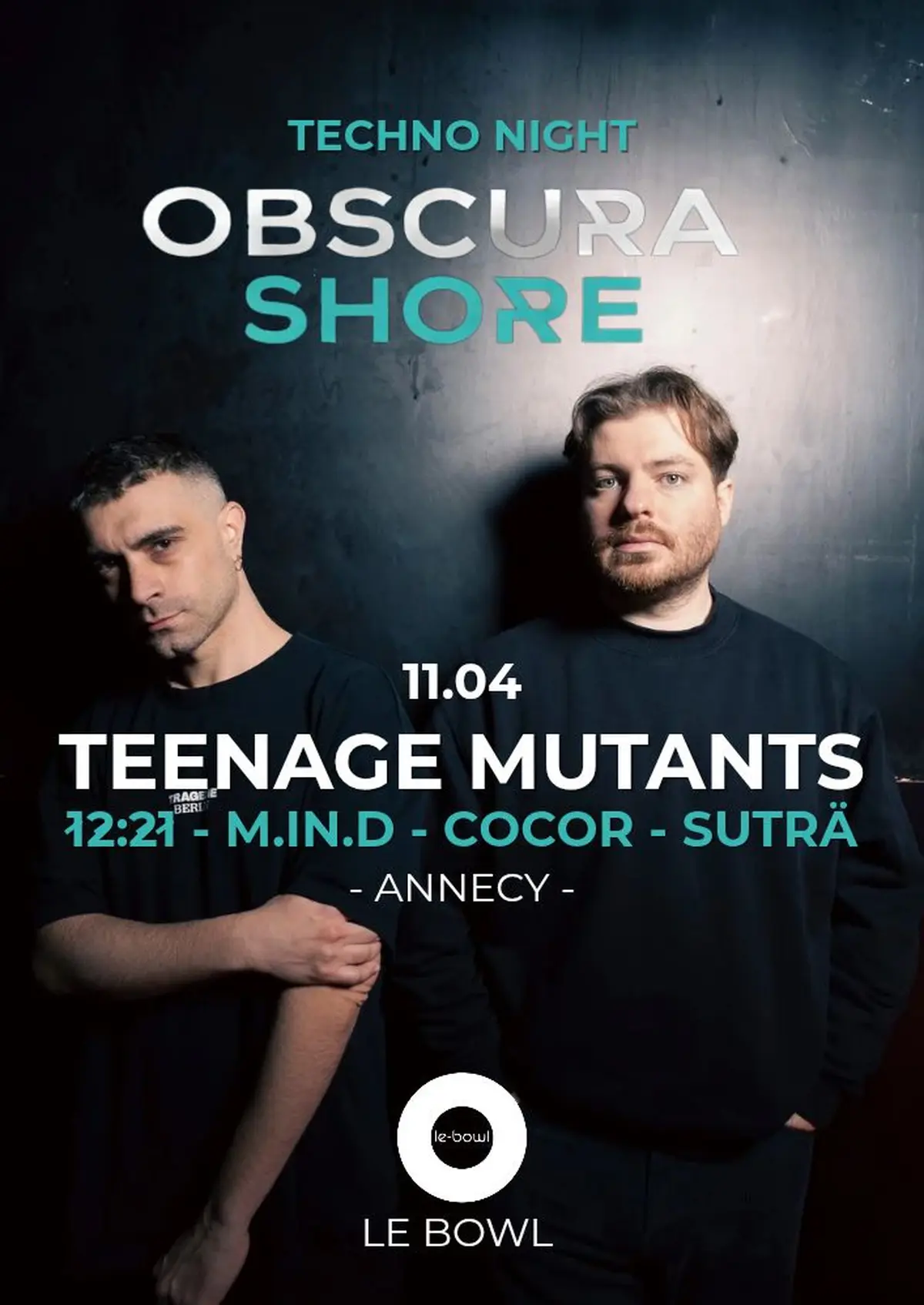 Obscura Shore à Annecy lance une première édition pensée par My Element, avec Teenage Mutants en tête d’affiche et un line-up local taillé pour une nuit de 23h à 5h. Direction artistique claire, techno accessible mais intense, et Bowl transformé en dancefloor XXL. Sélectionné pour la promesse d’un voyage clubbing léché, sans détour.