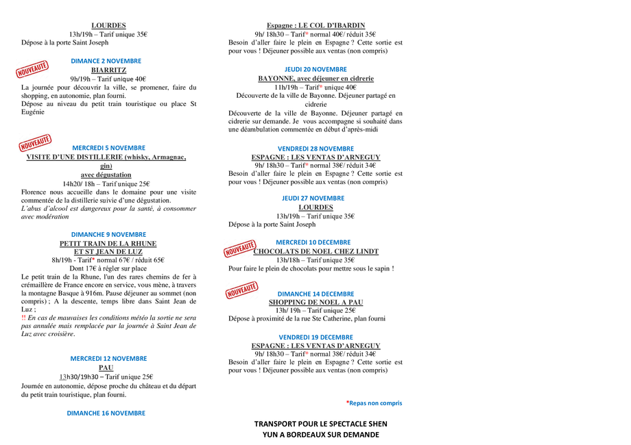- du Samedi 1 Novembre 2025 au Vendredi 19 Décembre 2025