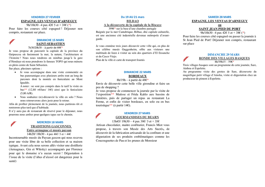 Excursions avec MochilaDu 01/04/2026 au 30/04/2026Duhort-BachenEmbarquez avec l'agence d'excursions Mochila Etc à la découverte de notre belle région.