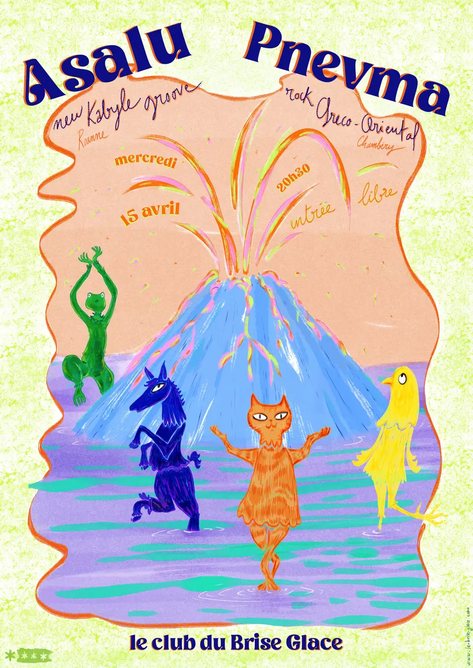 Amoureux du rebetiko, PNEVMA compose autour de cette esthétique en y mêlant l’énergie brute du rock. La musique d'ASALU est un savant mélange de groove urbain et de rythme d'Afrique sur des chansons en kabyle.