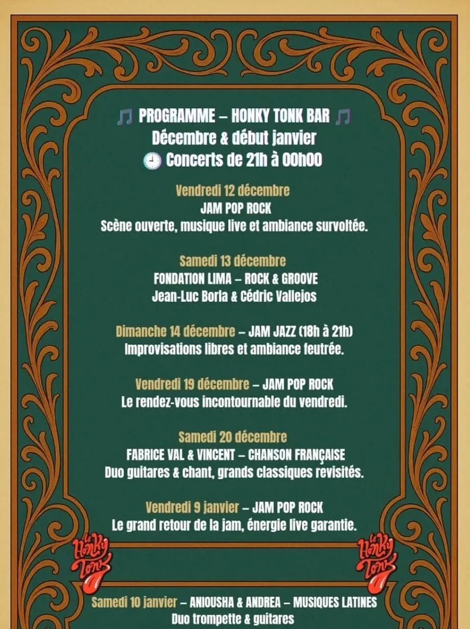 Note tes dates, ramène tes amis et viens faire le plein d’énergie au Honky Tonk Bar.