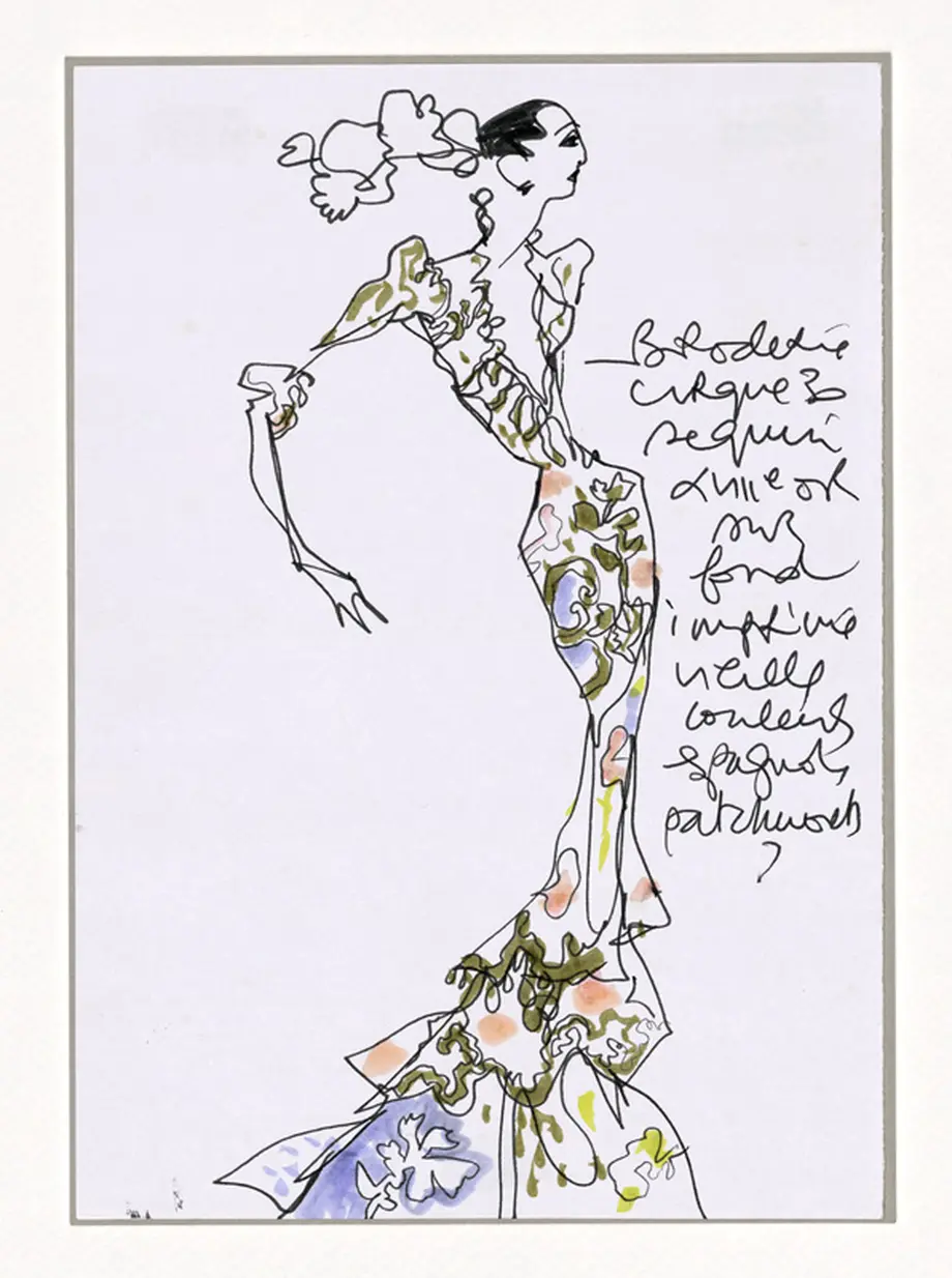 © © Dessins pour la haute couture, dépôt de l’association « Archives Patrimoine Monsieur Christian Lacroix ».