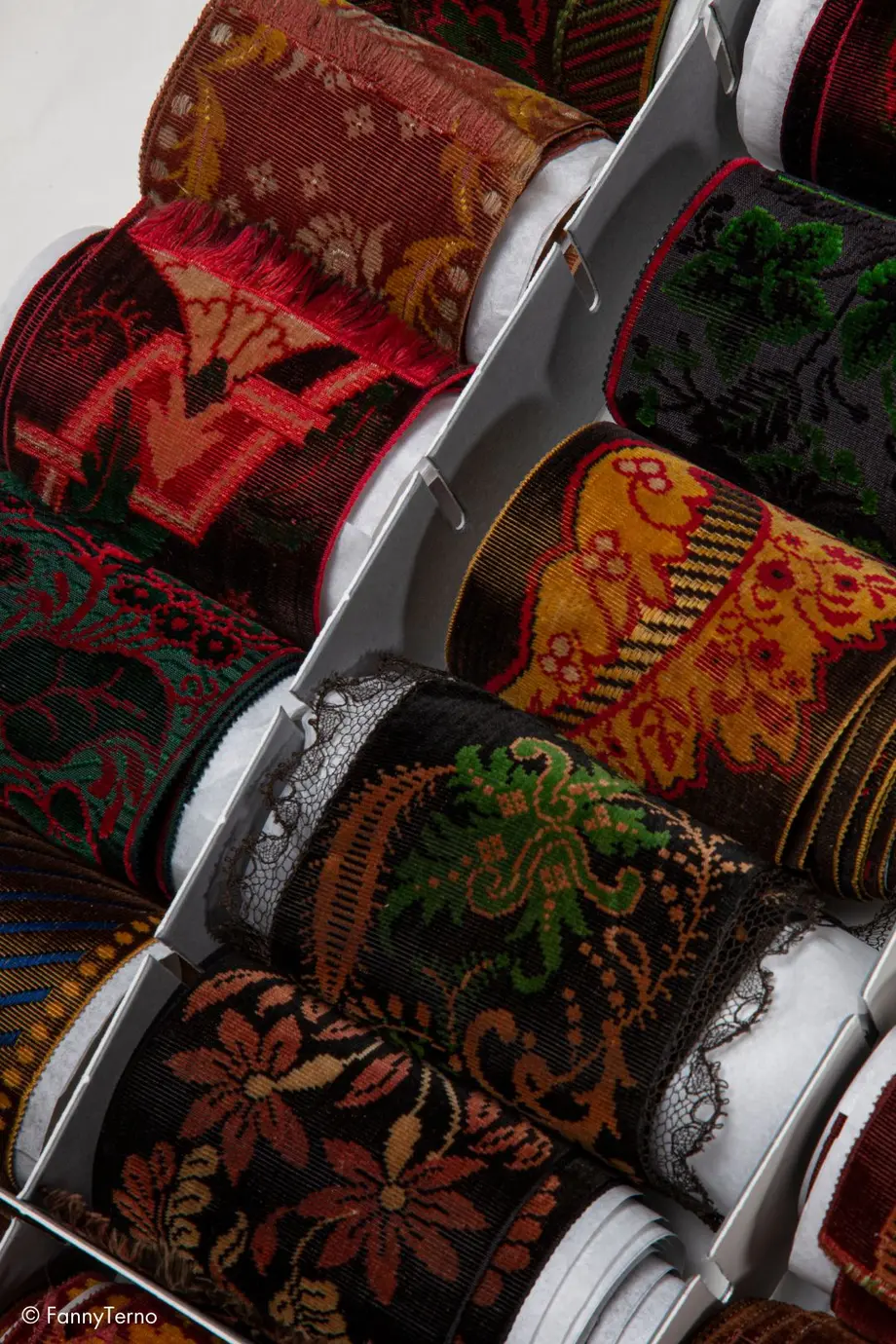 Collecter, ce n’est pas simplement accumuler ; c’est aussi ordonner, sélectionner, comprendre. L’objet collectionné devient, pour chacune, le fragment d’un récit, le miroir d’une époque rêvée. Hélène a composé une collection à partager, où le beau prédomine ; la couleur intacte de la teinture ou de l’impression et la rareté du motif deviennent une obsession. Magali, quant à elle, a accumulé pour rassembler les éléments dispersés par le temps, dans le but de restituer l’histoire des femmes d’Arles, de toutes conditions.