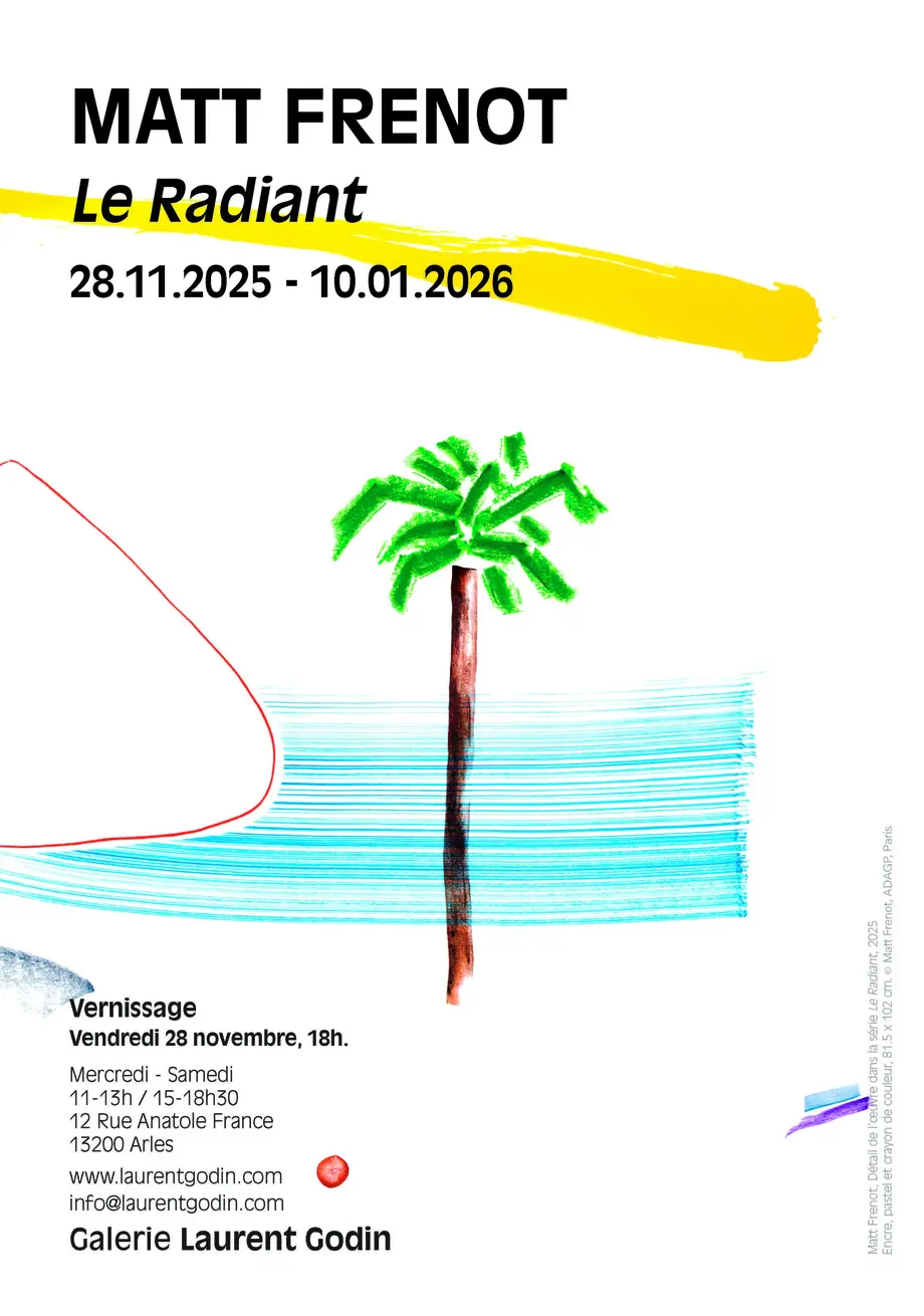 Il est surprenant, en découvrant cette nouvelle série de « dessins » de Matt Frenot, d’imaginer qu’ils ont été réalisés en partie sur le motif, transportés à plusieurs reprises de son atelier arlésien jusqu’aux plages de Piémanson ou des Saintes-Maries-de-la-Mer. Témoignant d’une grande économie de moyens — crayons de couleur, encre, pastels — ces œuvres se distinguent par la réduction volontaire de la composition et la délicatesse de leur lien au réel. À l’instar de ses œuvres photographiques, le rapport au temps est ici déterminant : Matt Frenot s’imprègne de la lumière, s’accorde aux couleurs, se rend disponible pour que les formes adviennent, lentement, presque à son insu.
