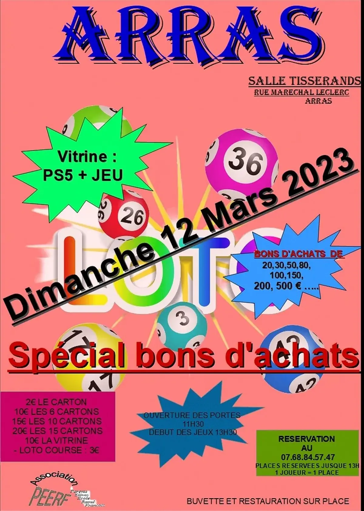 Loto salle tisserand Ouverture 11h30 Début des jeux 13h30 Spécial bons d'achats Vitrine ps5