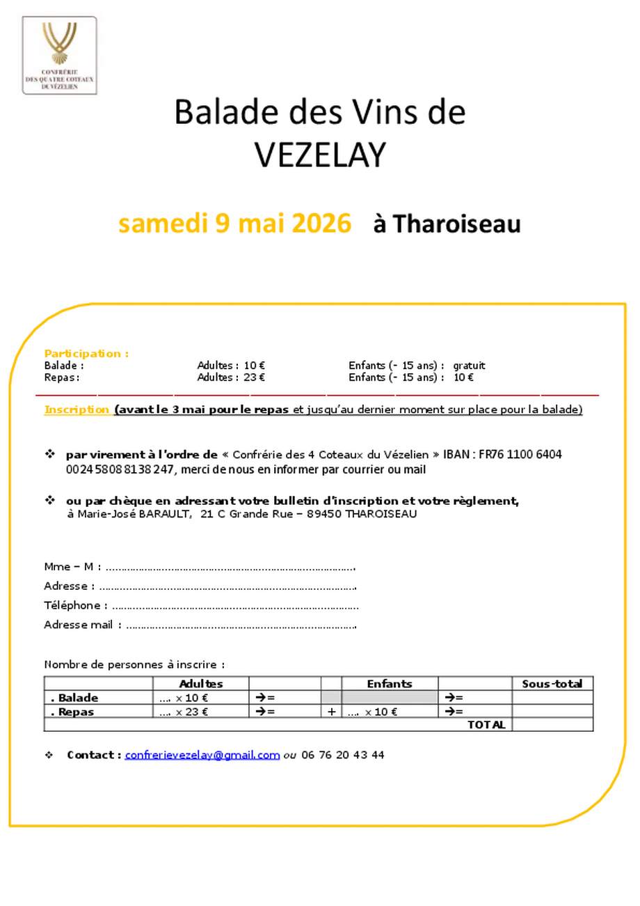 Balade des Vins de Vézelay 2026 | Tharoiseau