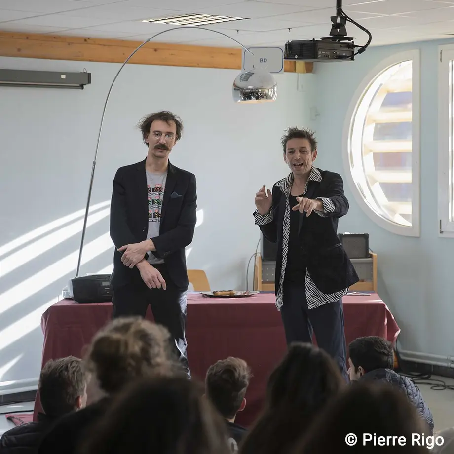 La Compagnie Raoul Lambert propose une réflexion jubilatoire sur l’art du doute. Au milieu d’une bibliothèque, deux « conférensorciers » invitent une personne du public à choisir un livre, une page, puis un mot. À partir de ce dernier, ils se lancent dans une digression sur le pouvoir des mots et pointent avec humour notre propension naturelle à la crédulité.