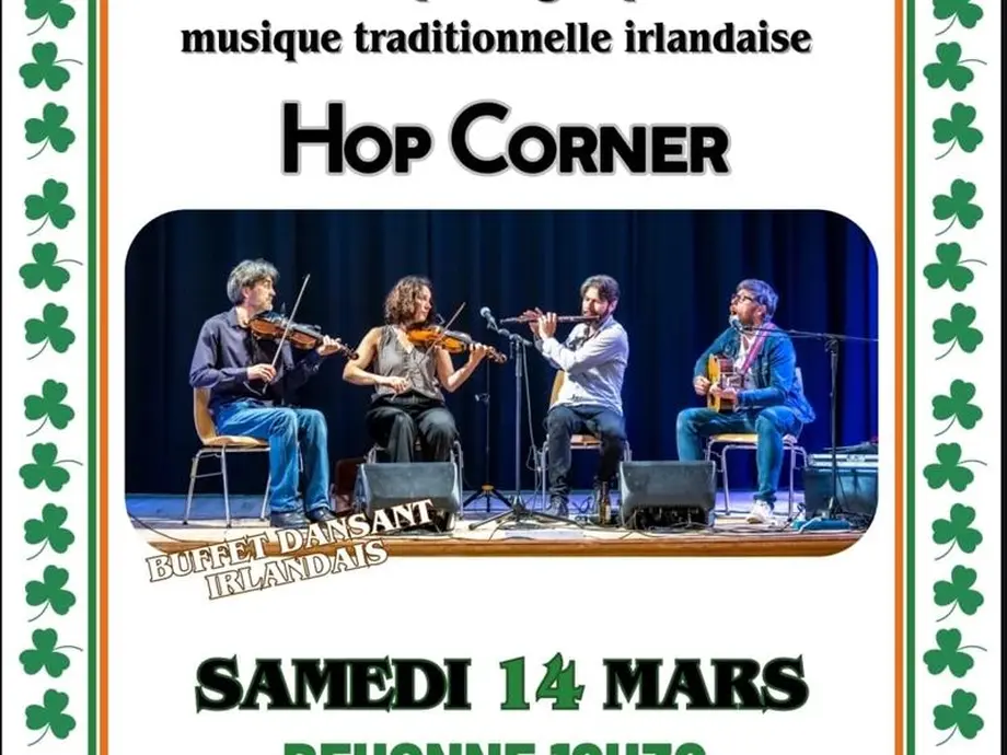 Buffet dansant irlandais, animé par le groupe de musique traditionnelle irlandaise Hop Corner.