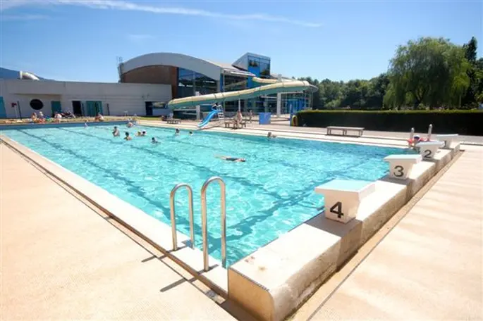 Cette piscine couverte est également équipée d'un grand bassin extérieur de 25 mètres, entouré d'un agréable cadre de verdure.