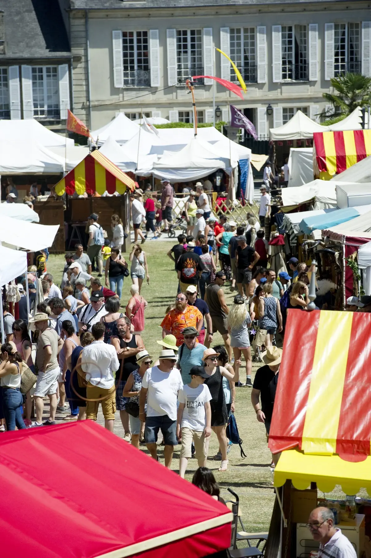 En marge des spectacles, le marché médiéval réunit des artisans aux savoir-faire inspirés des métiers d'autrefois : coutellerie, enluminure, tissage, travail du cuir ou de la cire. Les tavernes proposent des boissons et restaurations dans une ambiance de mise en scène fidèle à l'époque.