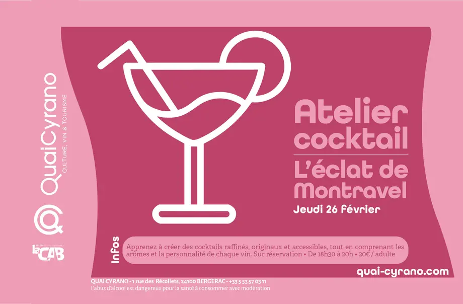 Découvrez un atelier inédit qui revisite les vins du Bergeracois et de Duras à travers l’art de la mixologie. Plongez au cœur du vignoble avec un atelier dédié à l’appellation Montravel rouge. Apprenez à créer des cocktails raffinés, originaux et accessibles, tout en comprenant les arômes et la personnalité de chaque vin. Un moment convivial, créatif et gourmand pour explorer le vignoble autrement.