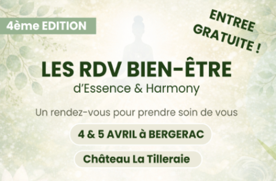 Les Rendez-vous Bien-Être, organisés par l’association Essence & Harmony, vous invitent à un week-end dédié à la découverte du bien-être, du développement personnel et de la spiritualité. Venez rencontrer de nombreux praticiens, thérapeutes, créateurs et artisans passionnés :