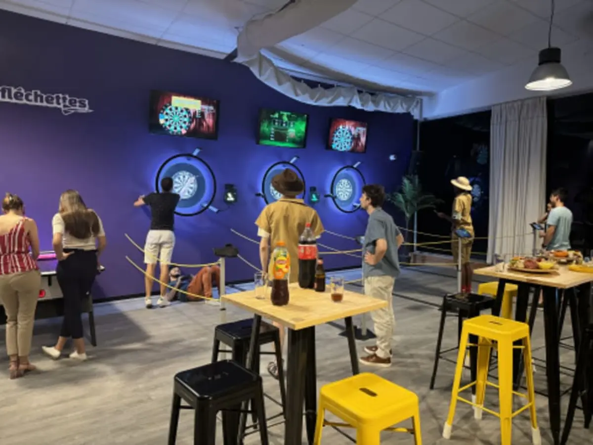 Découvrez les fléchettes 2.0 by Konvivio à Béziers pour une expérience de jeu révolutionnaire ! Fini les calculs laborieux : ici, les scores s'affichent automatiquement sur grand écran tandis que des mini-jeux interactifs pimentent vos parties. Entre classiques du 501 et nouvelles variantes, cette version high-tech des fléchettes transforme complètement ce sport de précision. Avec un bar-restaurant sur place, l'ambiance est garantie pour une heure de pur plaisir ! Cette activité moderne a été choisie pour son approche innovante qui rend les fléchettes accessibles à tous.