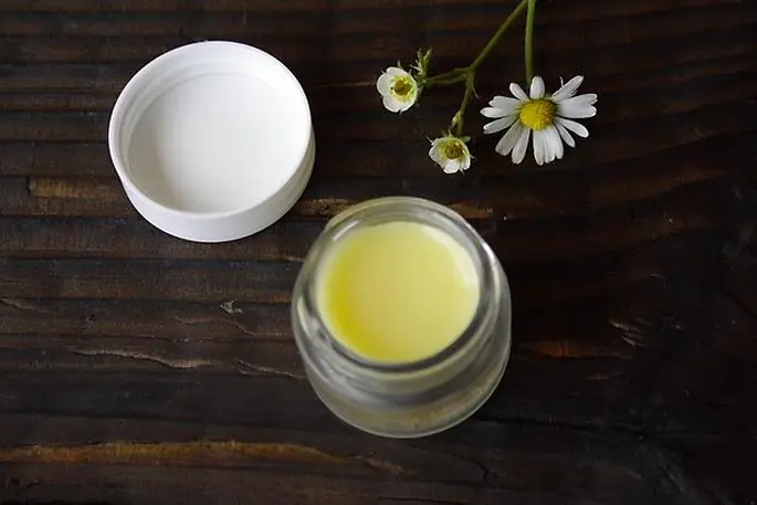 Les ingrédients : 1 cuillère à café de cire candelilla, 4 d'huile d'olive, 2 d'huile de ricin et 2 de beurre de cacao. Faites fondre au bain marie tous les ingrédients pour obtenir une pâte assez épaisse. Versez le mélange dans un petit pot en verre et laissez refroidir. À appliquer régulièrement, avant de dormir.