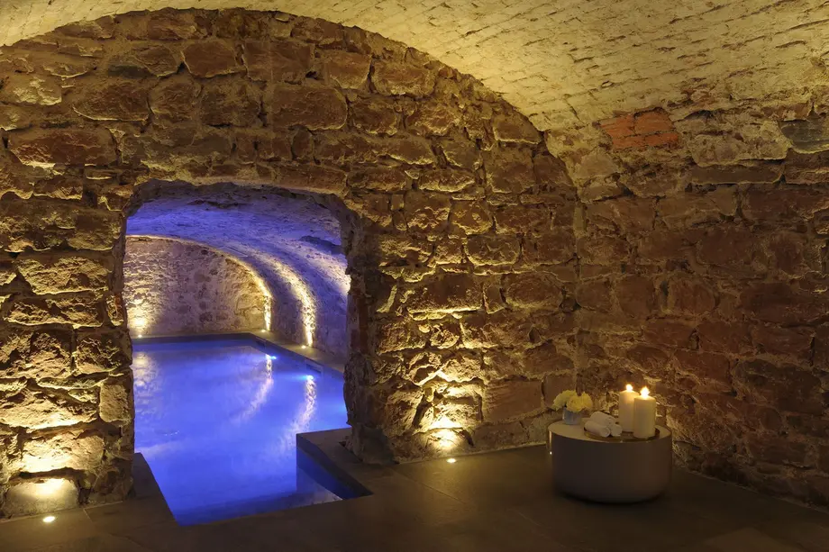 Niché dans une superbe cave voutée en Grès des Vosges, le spa de l'hôtel des 5 terres vous accueille dans un cadre confidentiel et intime. Dans cet univers minéral, venez faire une brasse dans la piscine intérieure, alimentée par la source naturelle des Oies, testez le hammam, le sauna et découvrez les rituels beauté Gemology, des soins mixant la cosmétologie et les vertus des pierres précieuses. A la clef : relaxation optimale, pour recommencer la semaine du bon pied !