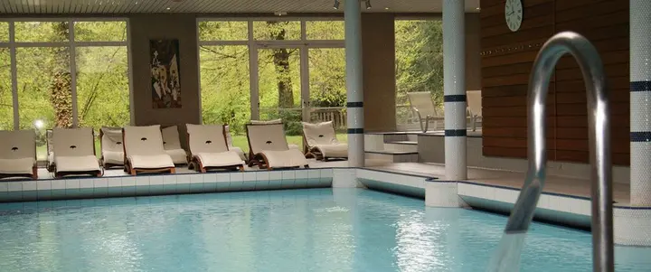 L'espace bien-être de l'Hostellerie des châteaux s'étend sur 1000m² ! Il y a d'un côté l'espace piscine avec piscine intérieure, spa, douche à chromothérapie, sauna familial... et de l'autre le spa avec : sauna des montagnes, laconuim, bio sauna, hammams, fauteuils chauffants...