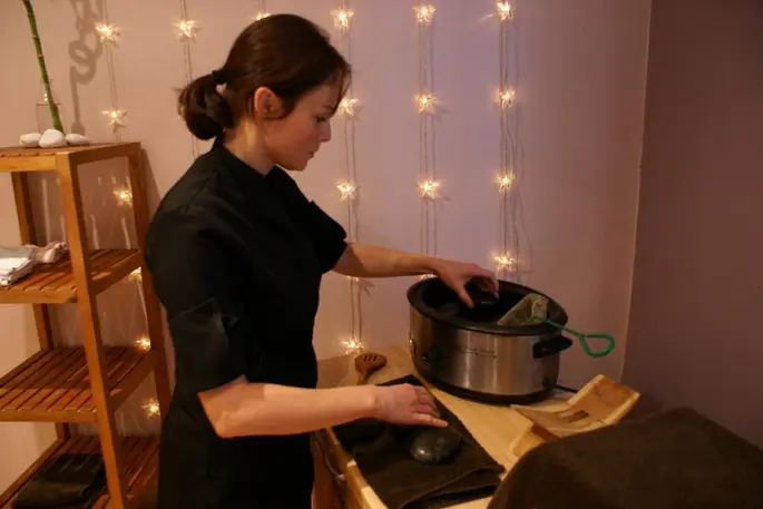 Préparation des pierres chaudes chez Sun Studio à Mulhouse