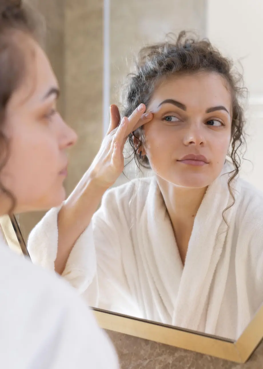 Pour avoir un visage détendu et moins tiré, on pratique l’automassage du visage, de préférence le soir avant de se coucher. On s’occupe d’abord de son crâne, en faisant des petites frictions comme si on se faisait un shampoing, puis on tapote doucement avec ses poings sur le dessus du crâne. On descend vers le front : on pose ses 5 doigts sur son front et on lisse de l’intérieur vers l’extérieur. On pince ensuite son arcade sourcilière entre le pouce et l’index et on va de l’intérieur vers l’extérieur. On poursuit avec les tempes : on pose son index et son majeur et on fait des petits cercles dans un sens puis dans l’autre. On masse ensuite ses pommettes, avec un index posé sur l’os en dessous des yeux, de l’intérieur vers l’extérieur, jusqu’aux pattes d’oies. On arrive au nez : avec l’index, on fait quelques frictions en descendant vers les narines. Pour le bas du visage, on masse avec le bout des doigts et avec des mouvements circulaire, depuis le menton jusqu’aux mâchoires, puis aux oreilles. Autre variante, plus tonique, au lieu de masser de façon circulaire, vous pincez entre le pouce et l’index toute cette zone.