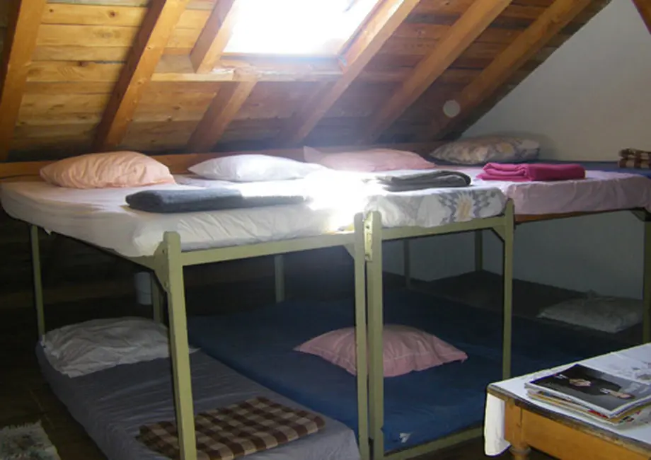 Un grand dortoir peut accueillir jusqu’à 20 personnes au premier étage de la ferme, douche et toilettes à l’étage.