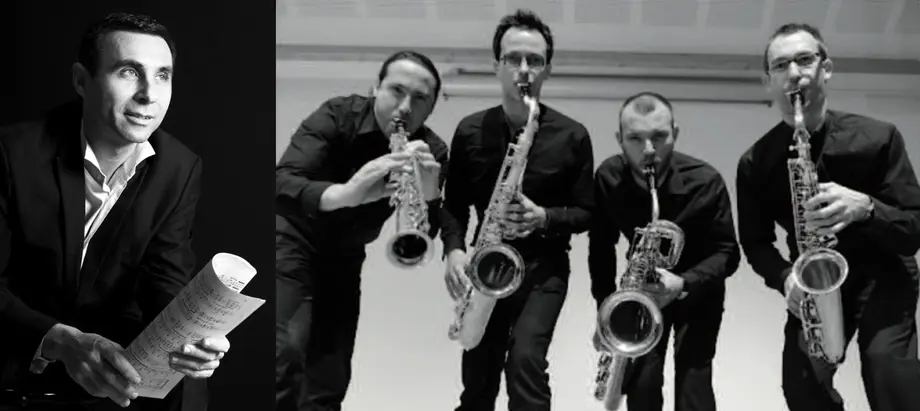 Concert : quatuor de saxophones avec piano par le Quatuor Azilys et le pianiste Jean-François Bouvery.