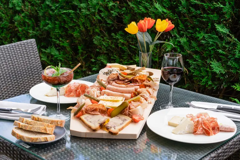 Profitez également de grandes terrasses surplombant un cadre verdoyant pour passer un moment détendu et apaisant.