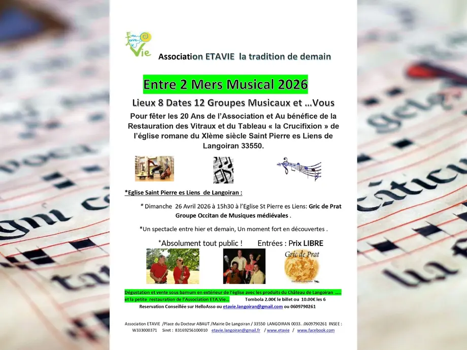 - Dimanche 26 avril à 15 h 30 : le groupe occitan Gric de Prat et ses musiques médiévales.