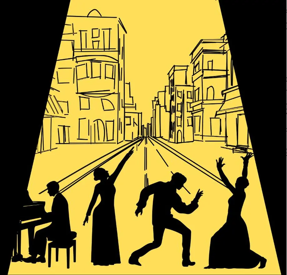 Des acteurs, sur scène puis dans la ville, jouent un scénario et interagissent avec des passants qui ignorent tout du film. La captation est retransmise instantanément sous vos yeux, sur grand écran, stylisée à la manière d’un film muet d’autrefois. Et les dialogues des personnages se transforment en cartons...