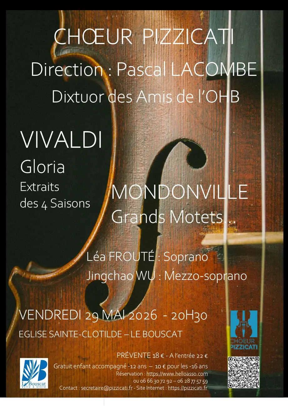 - le "Gloria in D" d'Antonio Vivaldi, composé en 1713, oeuvre de musique sacrée la plus célèbre. Des extraits des 4 saisons seront également donnés.