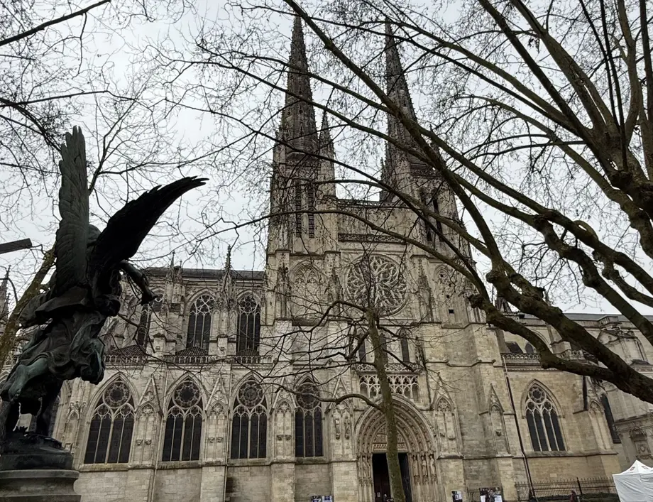 Une de ses grandes particularités visuelles est d'être séparée de son clocher, la fameuse tour Pey-Berland. Les bâtisseurs de l'époque ont rapidement compris que le sol marécageux bordelais ne supporterait pas le poids et les vibrations des immenses cloches sur la structure principale. Aujourd'hui, les larges bancs de pierre qui entourent la cathédrale sont devenus de véritables points de ralliement pour les habitants. On s'y assoit pour manger un sandwich le midi, lire au soleil, ou simplement attendre un ami en observant les détails des façades sculptées.