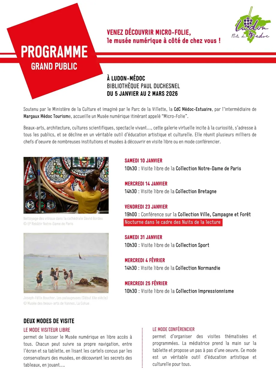 Soutenue par le Ministère de la Culture et imaginée par le Parc de la Villette, la CdC Médoc-Estuaire, par l’intermédiaire de Margaux Médoc Tourisme, accueille un musée numérique itinérant appelé « Micro-Folie ».