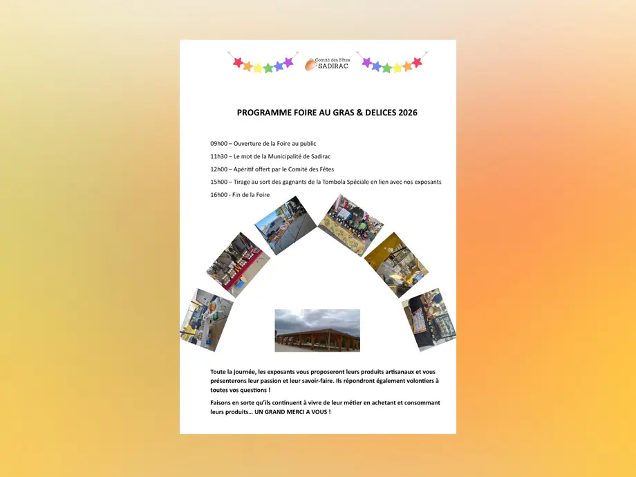 Comme chaque année, le Comité des fêtes de Sadirac vous donne rendez-vous pour une journée placée sous le signe de la gourmandise et du savoir-faire local.