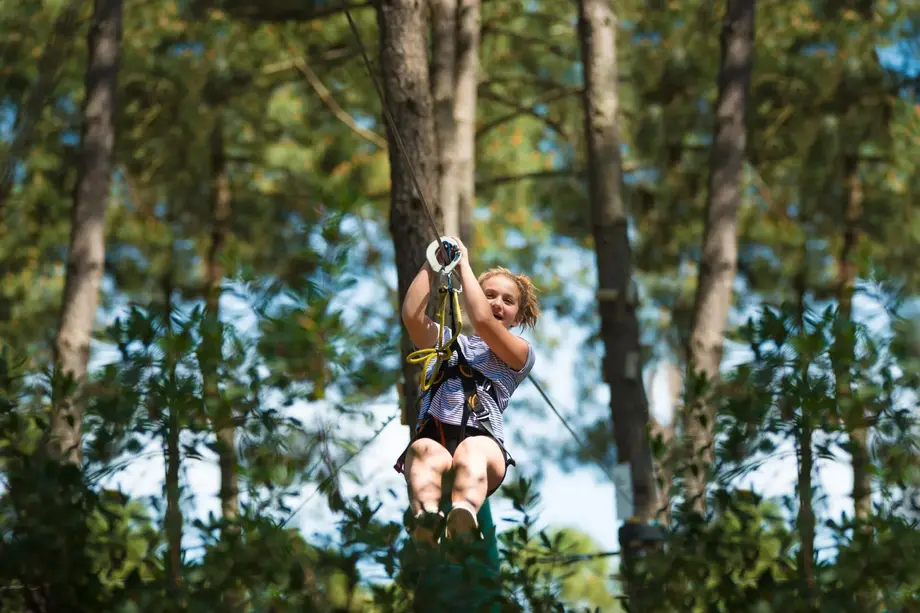 Le parc d'accrobranche Bassin Aventures accueille les visiteurs dans un cadre naturel aménagé pour la pratique de l'escalade et de la traversée d'obstacles en hauteur. Le site propose plusieurs parcours adaptés à différents niveaux de difficulté, permettant aux enfants comme aux adultes de progresser à leur rythme. Les activités incluent :