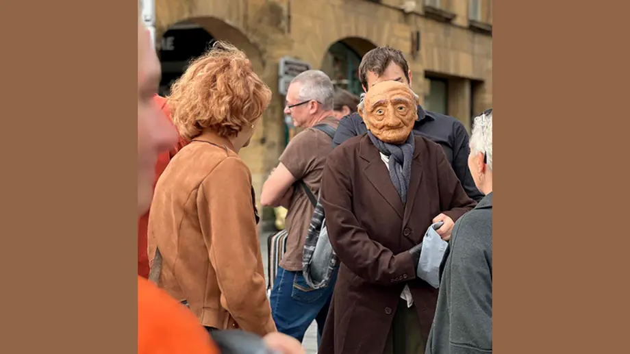 Avis à tous ! Ouvrons les yeux et ouvrons nos cœurs : les Invisibles sont parmi nous, avec leurs marionnettes portées, qui sont un peu de nous et de nos amis. M. Léon le philosophe déglingué, Mathilde la poétesse, Henriette la vieille foldingue, Sasha la petite curieuse, la mamie Huguette, Mme Lulu la mondaine, Rosita la danseuse de flamenco, Anita la dame pipi, Albertinho l’immigré et tous les autres…