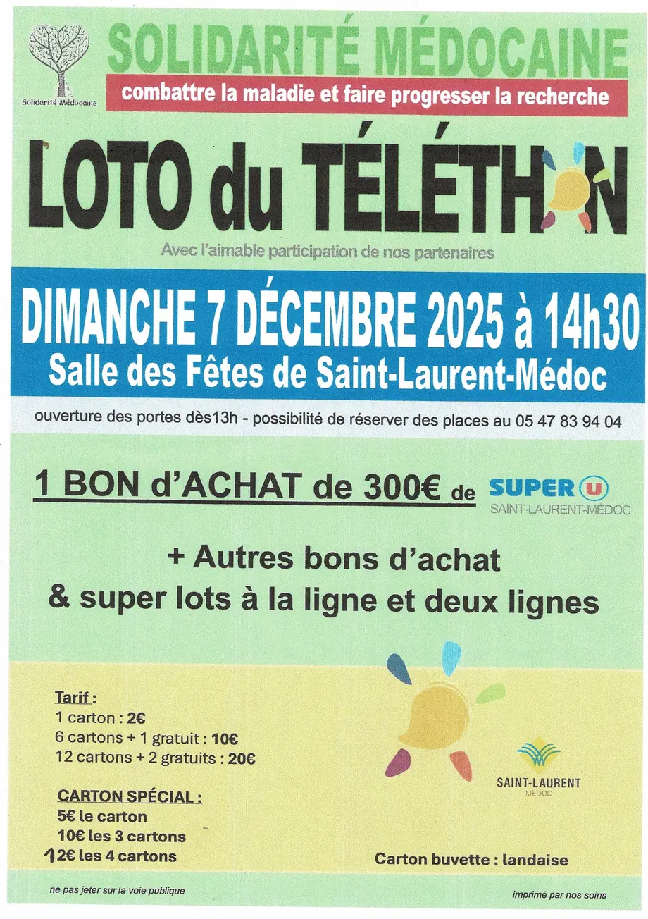Loto pour le TéléthonLe 05/12/2025 Cussac-Fort-Médoc