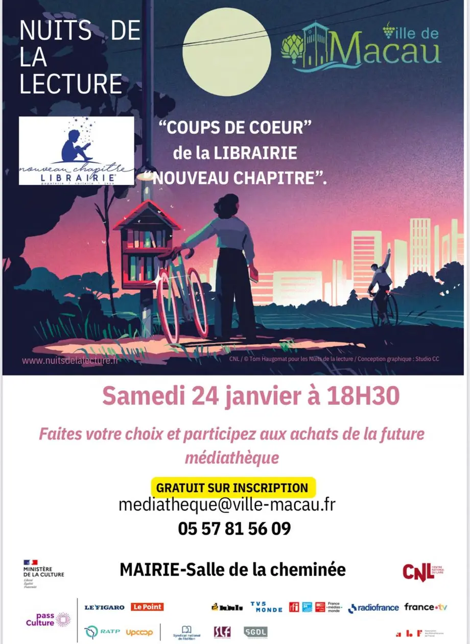 Nuits de la lecture - Lectures en pyjamaLe 23/01/2026 MacauPour les 5 à 8 ans, accompagnés.