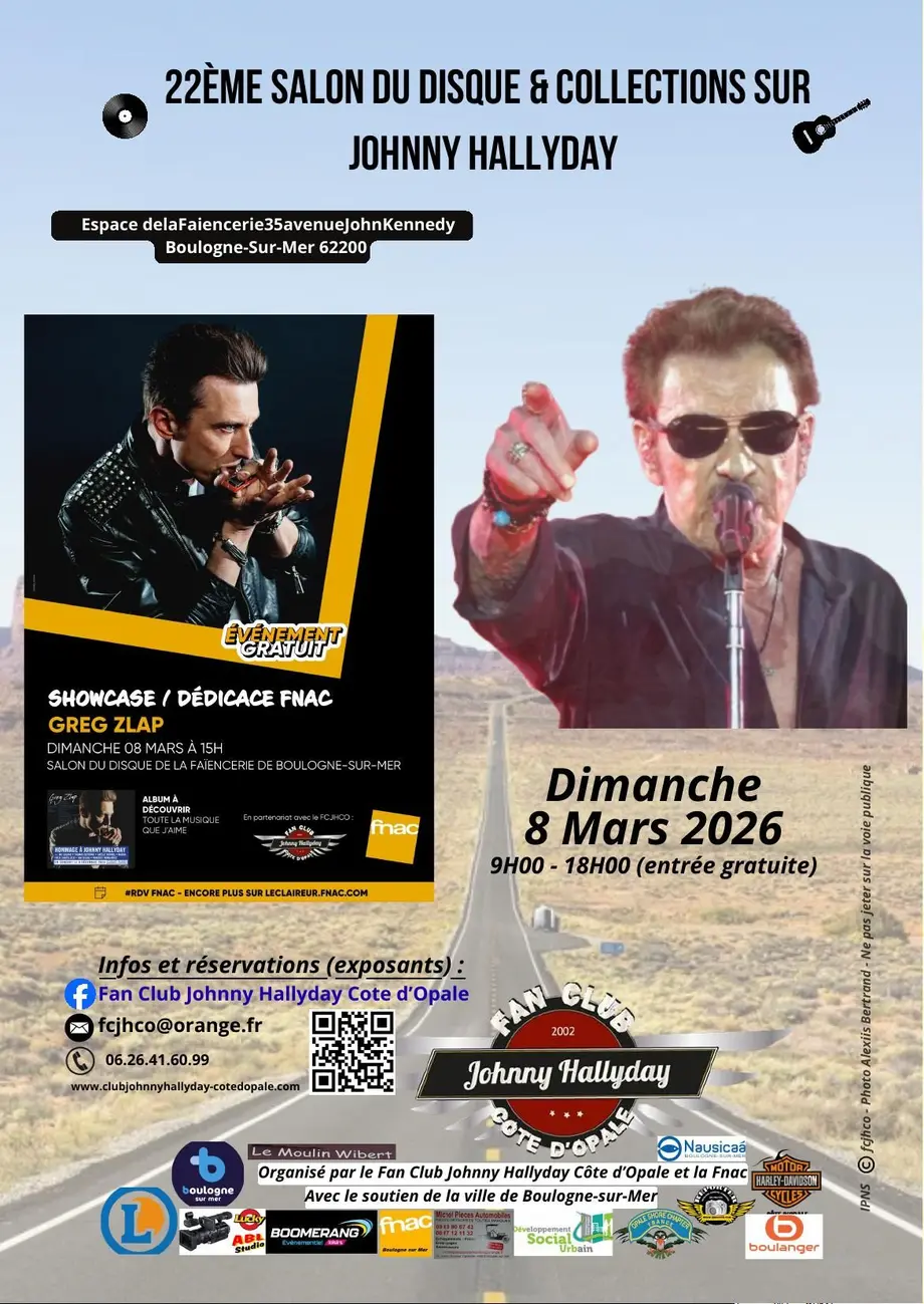 Le Fan Club Johnny Hallyday Cote d'Opale organise son 22 éme Salon du disque de Boulogne sur mer - Ouvert à tous les styles de musiques Rock ; Blues , Hard Rock ..; et fans de Johnny ..