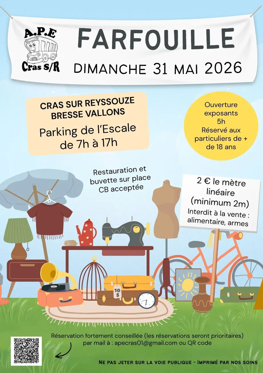 Vide grenierLe 10/05/2026PerrexVide-grenier du Sou des écoles de Perrex