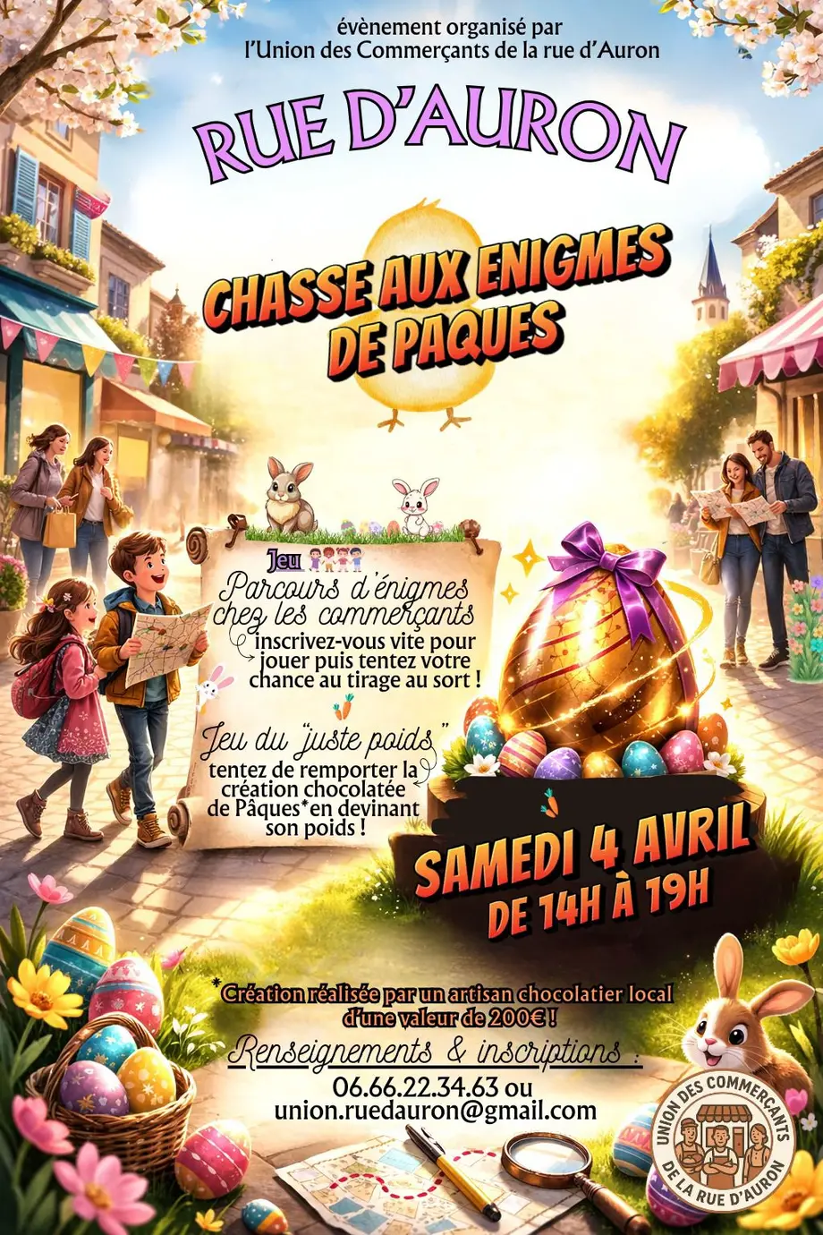 Samedi 4 avril, de 14 h à 19 h, l’Union des Commerçants de la rue d’Auron invite petits et grands à célébrer Pâques dans une ambiance conviviale et ludique.