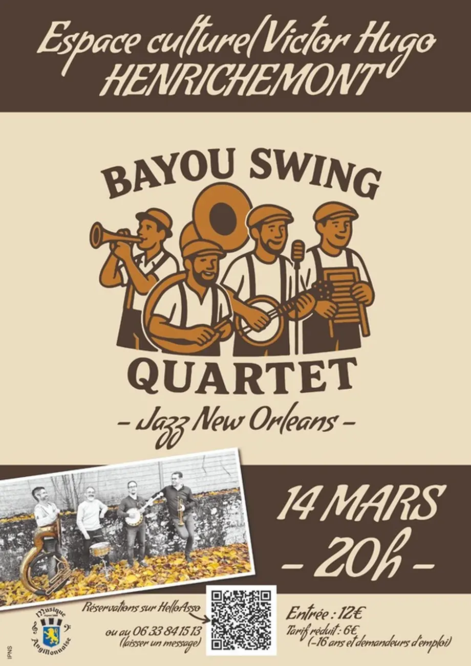 L’Espace culturel Victor Hugo à Henrichemont accueille le Bayou Swing Quartet pour une soirée aux couleurs de la Nouvelle-Orléans.